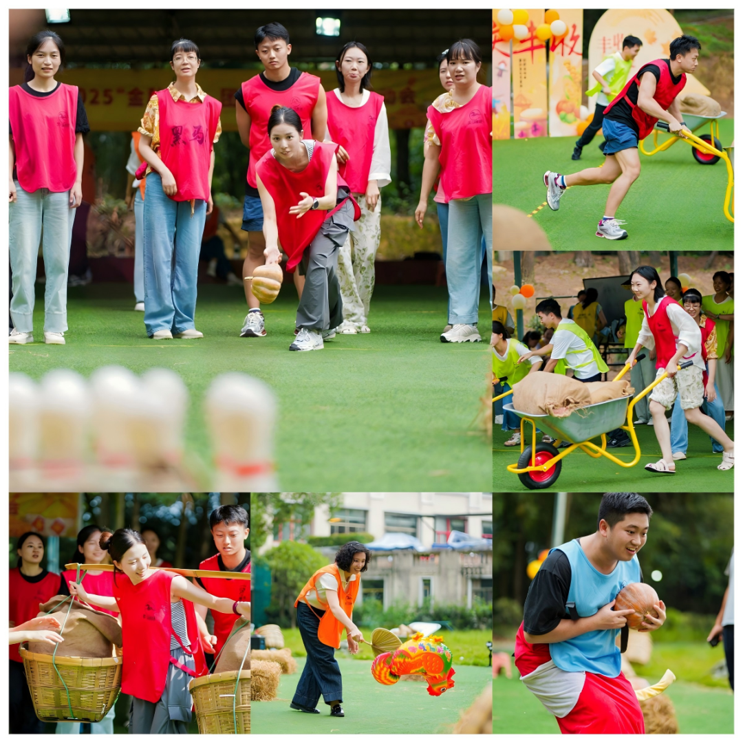 本次运动会聚焦“团队共融”核心主题,精心设置六大特色项目,将竞技性与趣味性深度融合。“扁担接力”现场,选手们肩挑道具稳步前行,脚步起落间尽显平衡技巧与衔接默契,围观者的加油声随步伐节奏此起彼伏;“袋鼠运瓜”中,参赛者套上布袋蹦跳前进,怀抱“南瓜”道具的模样引得全场欢笑,每一次平稳传递都是团队配合的生动见证。“南瓜保龄球”以仿真南瓜替代传统球瓶,选手们精准投掷的瞬间总能收获阵阵喝彩,让运动快乐加倍传递;“赶鸡入笼”项目堪称全场焦点,队员们手持道具默契配合,将代表“小鸡”的气球赶入指定区域,紧张又诙谐的场面让赛场笑声不断,充分锻炼团队快速反应能力。“推车囤粮”里,选手们合力推动道具车运送“粮食”,脚步同步、口号一致,展现出极强的团队凝聚力;压轴的“拔河比赛”更是将氛围推向高潮,参赛队员紧握长绳、重心下沉,场外助威声震耳欲聋,绳结的每一次移动都牵动全场目光,完美诠释“团结就是力量”的深刻内涵。赛场上,选手们秉持“友谊第一、比赛第二”的理念,奋力拼搏却不失温情,失误时的互相鼓励、获胜后的共同欢呼,让每一个瞬间都暖意融融。赛场下,裁判员严谨公正执裁,工作人员细致做好服务保障,确保活动顺利推进。